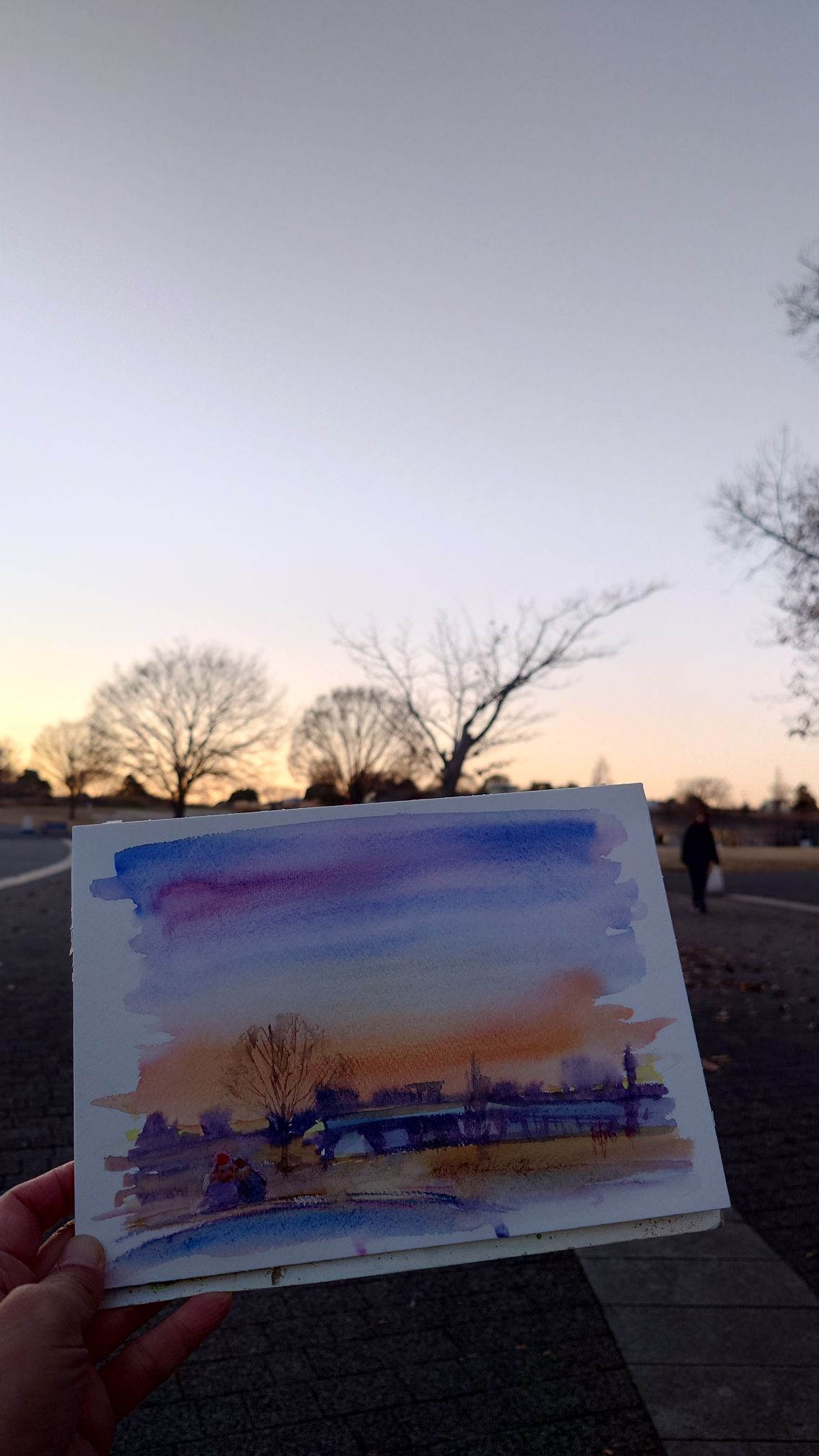 12月前半のほうが雲が多い日があるのですが(私調べ)今年は所用があり雲の日に描きに行けませんでした。